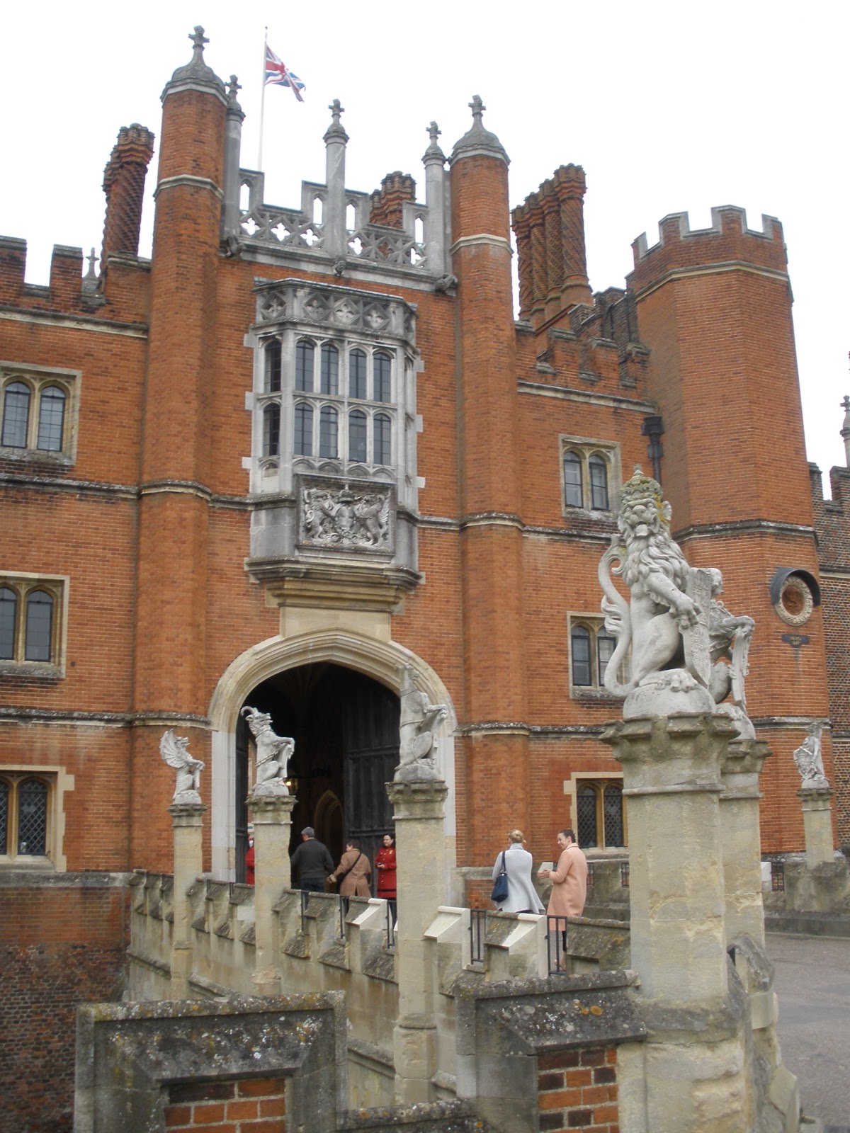 I was intrigued to learn that Hampton Court is run by a private foundation, not the Crown. A marvelous short excursion for you from London, this 30 minute trip to Hampton Court offers you a wonderful tour of the house and grounds, a glimpse of two periods in which the house was occupied by royalty—and a scrumptious tea shop with gloriously steaming, creamy hot potato soup and home made bread! (Other items, too. But on the cold day we were there, this fare hit the spot.) And as for that gentleman I brought home with me to consult on future novels?